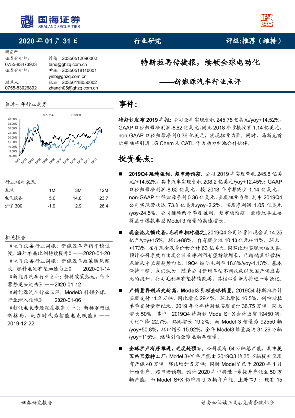 【国海证券】【20200131】新能源汽车行业点评:特斯拉再传捷报,续领全球电动化-12页