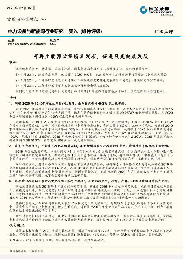 【国金证券】【20200202】电力设备与新能源行业研究:可再生能源政策密集发布,促进风光健康发展-9页
