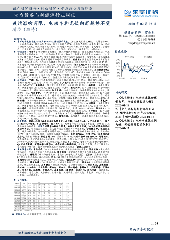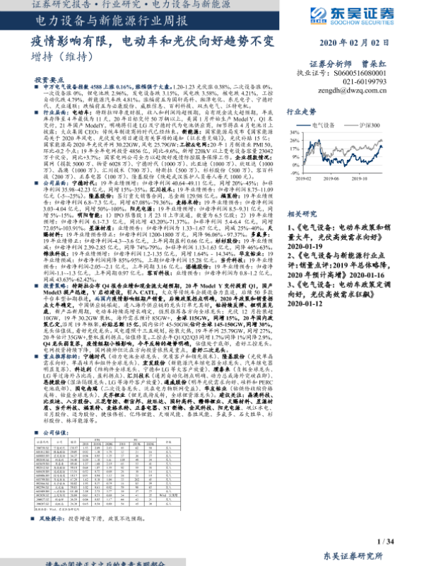 【东吴证券】【20200202】电力设备与新能源行业周报:疫情影响有限,电动车和光伏向好趋势不变-34页