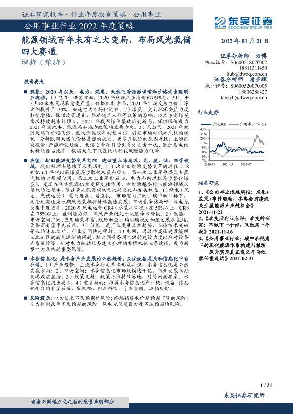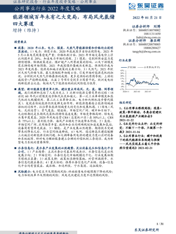 【东吴证券】【20220121】公用事业行业2022年度策略:能源领域百年未有之大变局,布局风光氢储四大赛道-31页