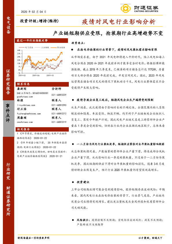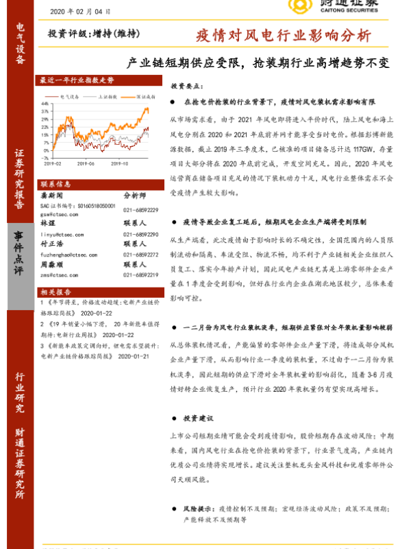 【财通证券】【20200204】疫情对风电行业影响分析:产业链短期供应受限,抢装期行业高增趋势不变-5页