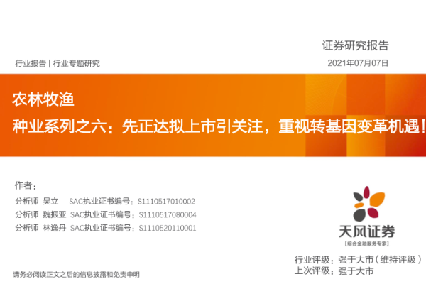 【天风证券】【20210707】农林牧渔行业种业系列之六:先正达拟上市引关注,重视转基因变革机遇!-34页
