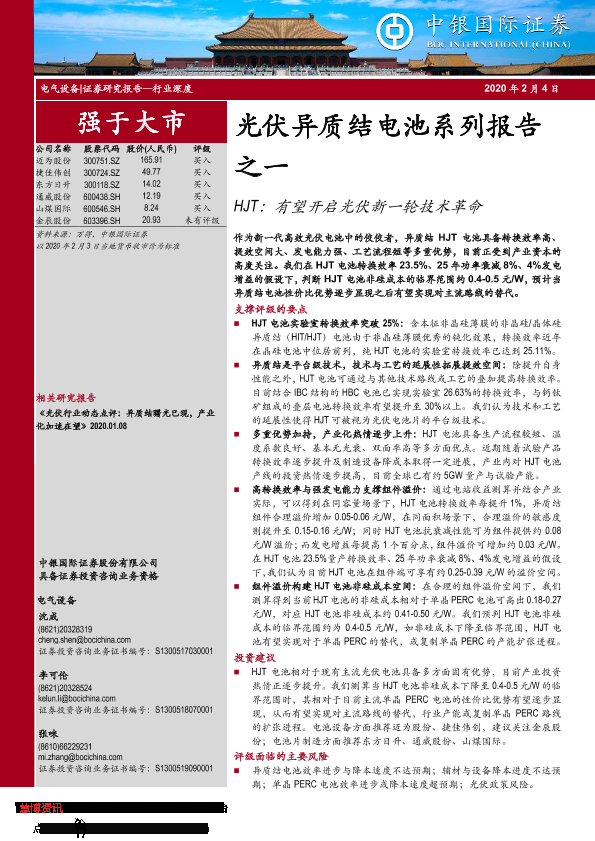 【中银证券】【20200204】光伏异质结电池系列报告之一:HJT:有望开启光伏新一轮技术革命-32页