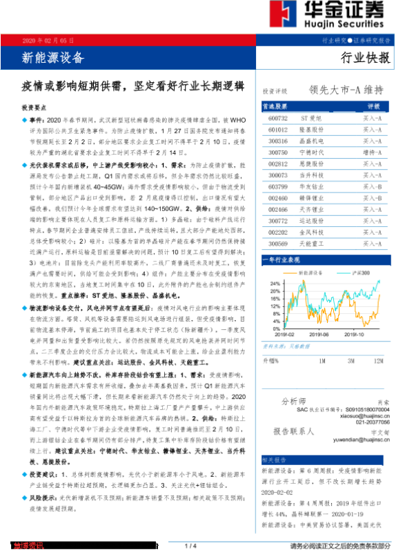 【华金证券】【20200205】新能源设备:疫情或影响短期供需,坚定看好行业长期逻辑-4页