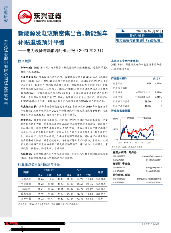 【东兴证券】【20200206】电力设备与新能源行业月报(2020年2月):新能源发电政策密集出台,新能源车补贴退坡预计平缓-15页