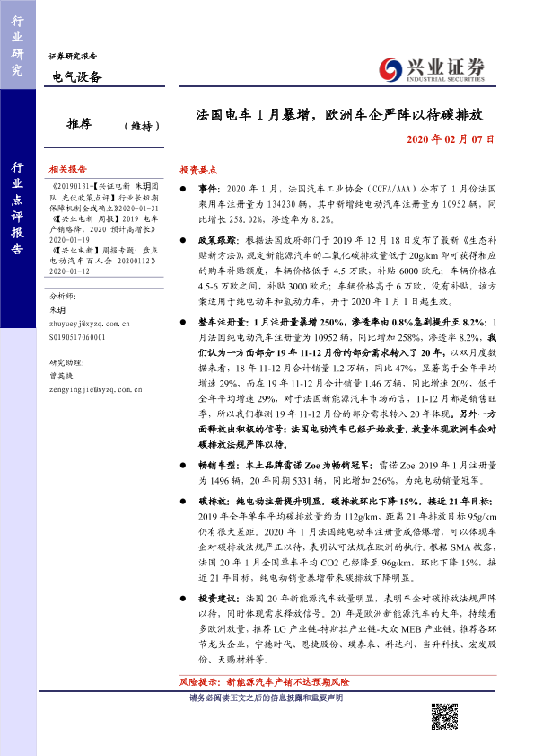【兴业证券】【20200207】法国电车1月暴增,欧洲车企严阵以待碳排放-7页