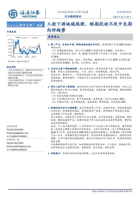 【海通证券】【20200209】电气设备:工控下游地域梳理,短期扰动不改中长期向好趋势-8页