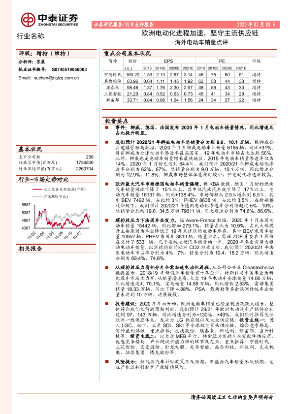 【中泰证券】【20200208】海外电动车销量点评:欧洲电动化进程加速,坚守主流供应链-9页