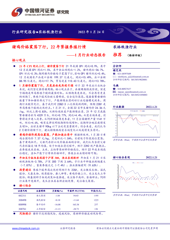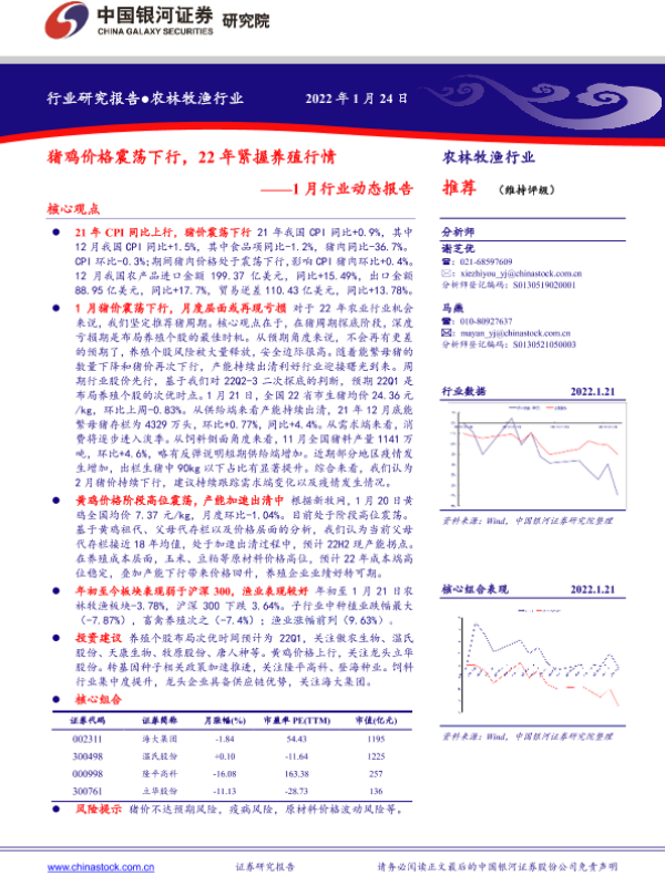 【银河证券】【20220124】农林牧渔行业1月行业动态报告:猪鸡价格震荡下行,22年紧握养殖行情-25页