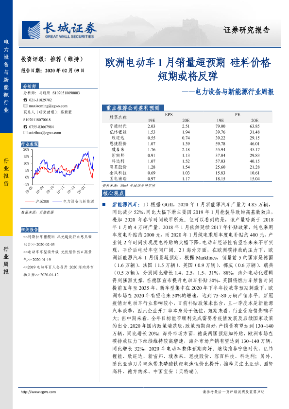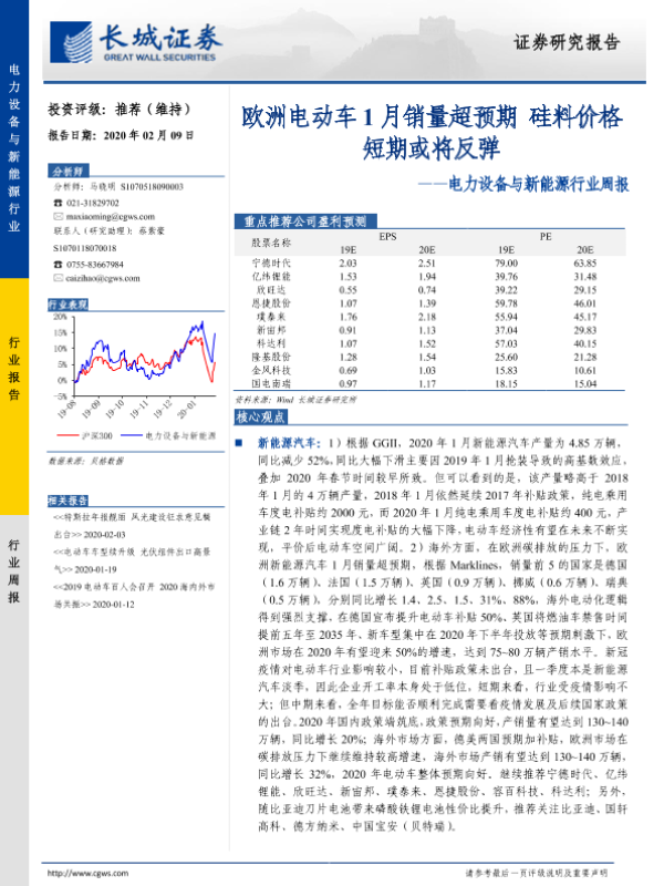 【长城证券】【20200209】20200209-长城证券-电力设备与新能源行业周报:欧洲电动车1月销量超预期 硅料价格短期或将反弹-13页