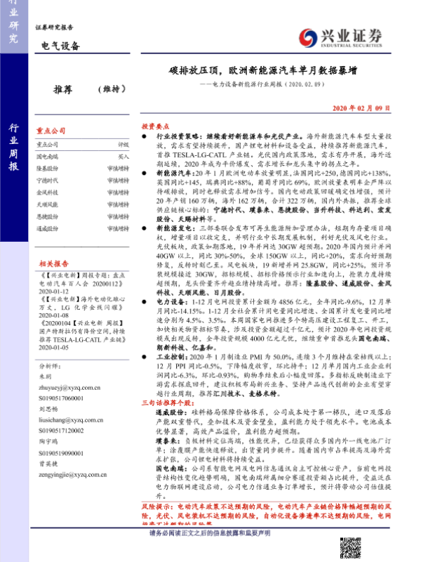 【兴业证券】【20200209】碳排放压顶,欧洲新能源汽车单月数据暴增——电力设备新能源行业周报(2020.02.09)-32页