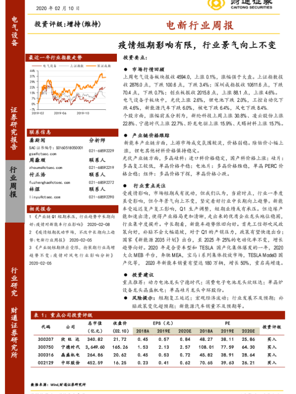 【财通证券】【20200210】20200210-财通证券-电新行业周报:疫情短期影响有限,行业景气向上不变-12页