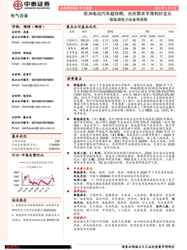 【中泰证券】【20200209】20200209-中泰证券-新能源电力设备周观察:欧洲电动汽车超预期,光伏需求平滑利好龙头-18页