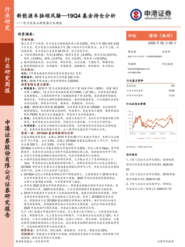 【申港证券】【20200209】电力设备与新能源行业周报:新能源车独领风骚—19Q4基金持仓分析-42页
