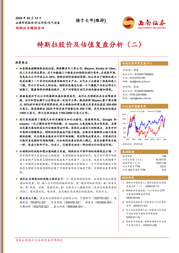 【西南证券】【20200212】特斯拉专题报告四 特斯拉股价及估值复盘分析(二)-13页