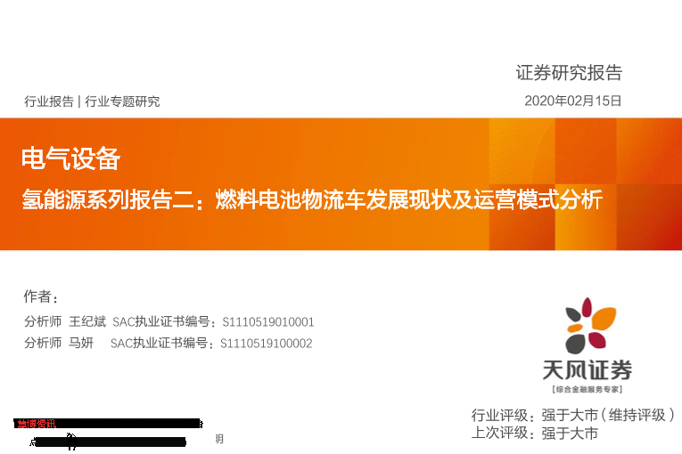 【天风证券】【20200215】氢能源系列报告二:燃料电池物流车发展现状及运营模式分析-13页