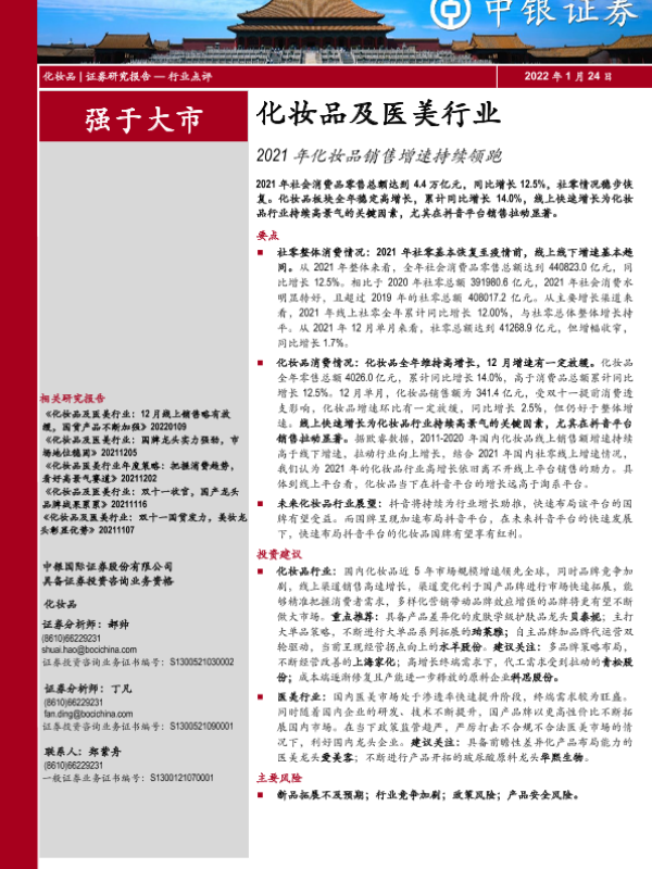 【中银证券】【20220124】化妆品及医美行业:2021年化妆品销售增速持续领跑-15页