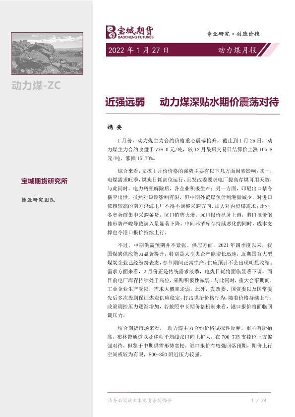 【宝城期货】【20220127】动力煤月报:近强远弱,动力煤深贴水期价震荡对待-23页