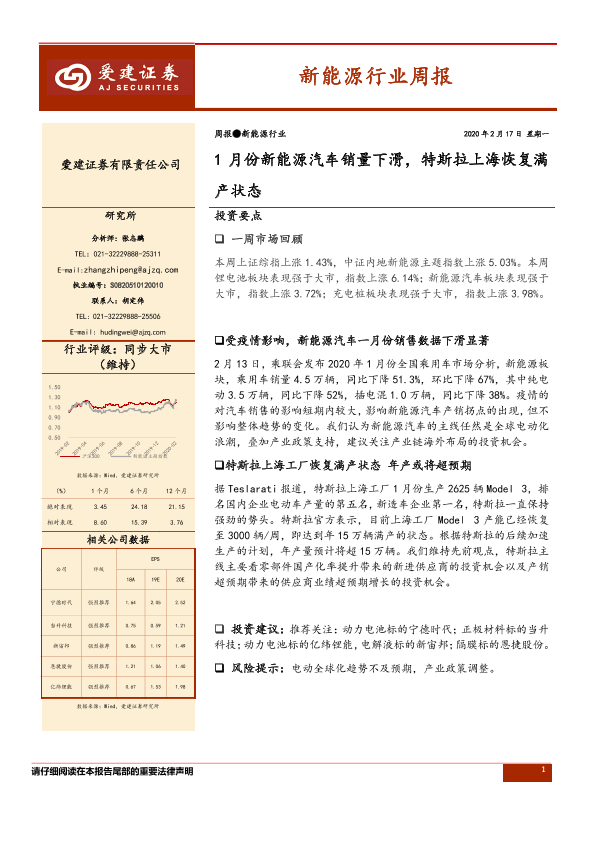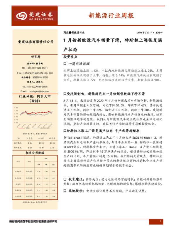 【爱建证券】【20200217】20200217-爱建证券-新能源行业周报:1月份新能源汽车销量下滑,特斯拉上海恢复满产状态-14页