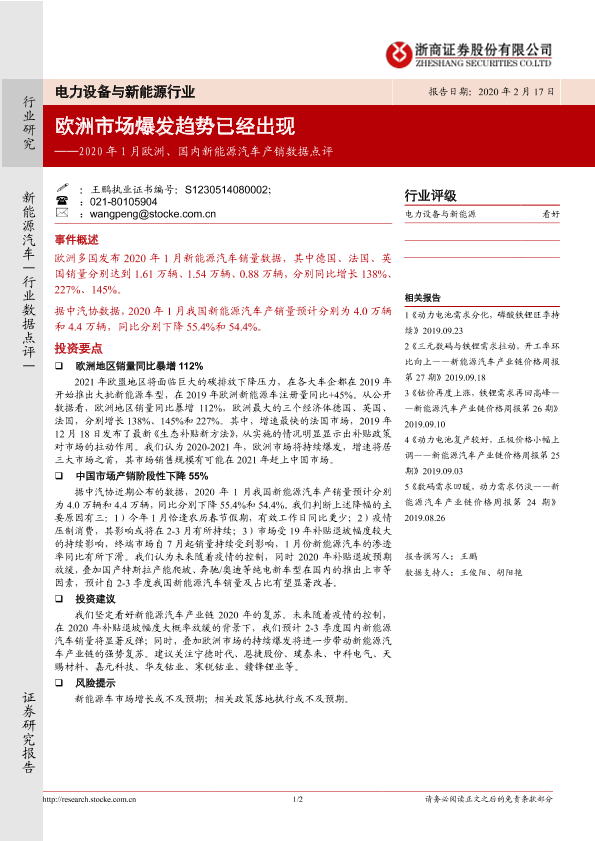 【浙商证券】【20200217】2020年1月欧洲、国内新能源汽车产销数据点评:欧洲市场爆发趋势已经出现-2页