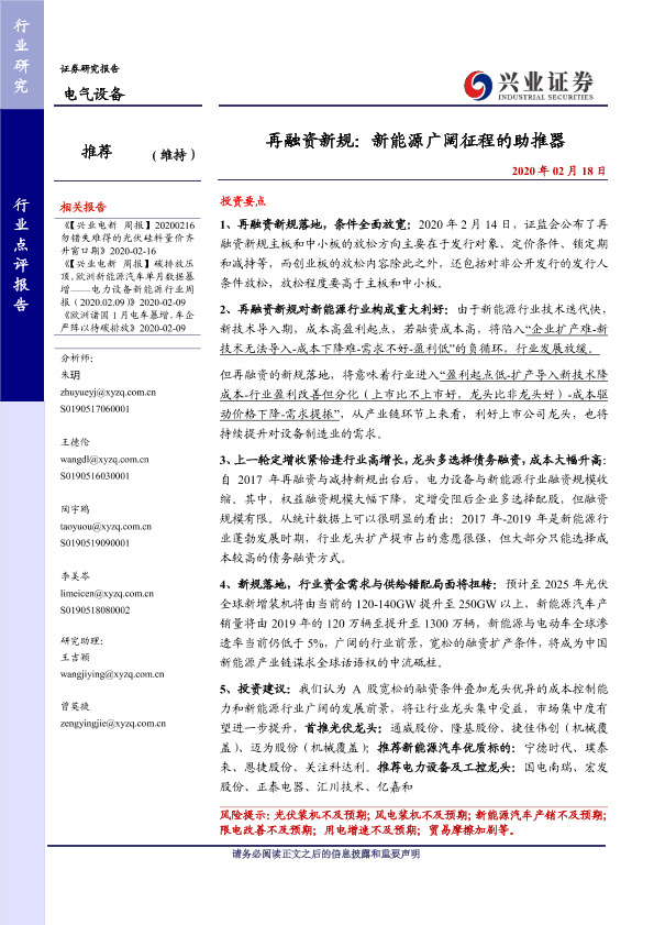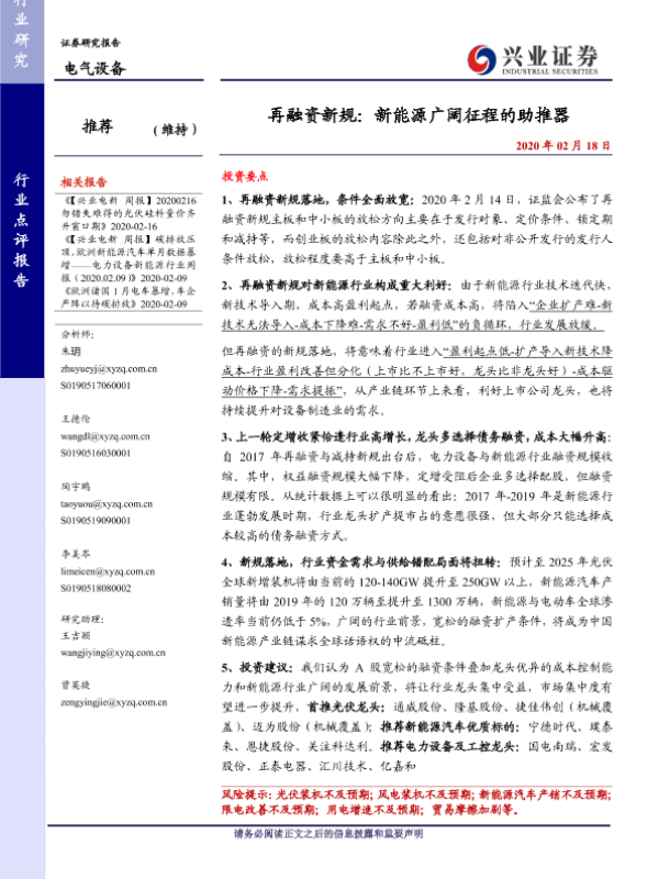 【兴业证券】【20200218】电气设备:再融资新规:新能源广阔征程的助推器-18页