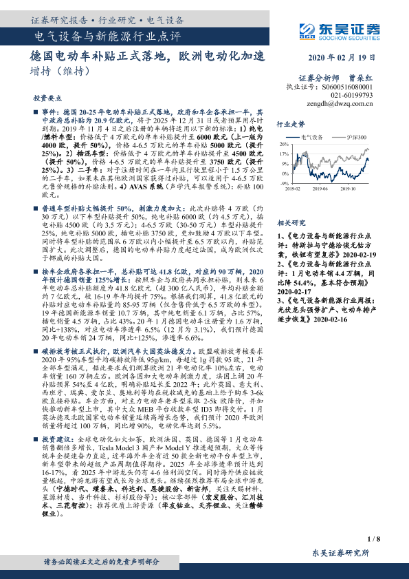 【东吴证券】【20200219】电气设备与新能源行业点评:德国电动车补贴正式落地,欧洲电动化加速-8页