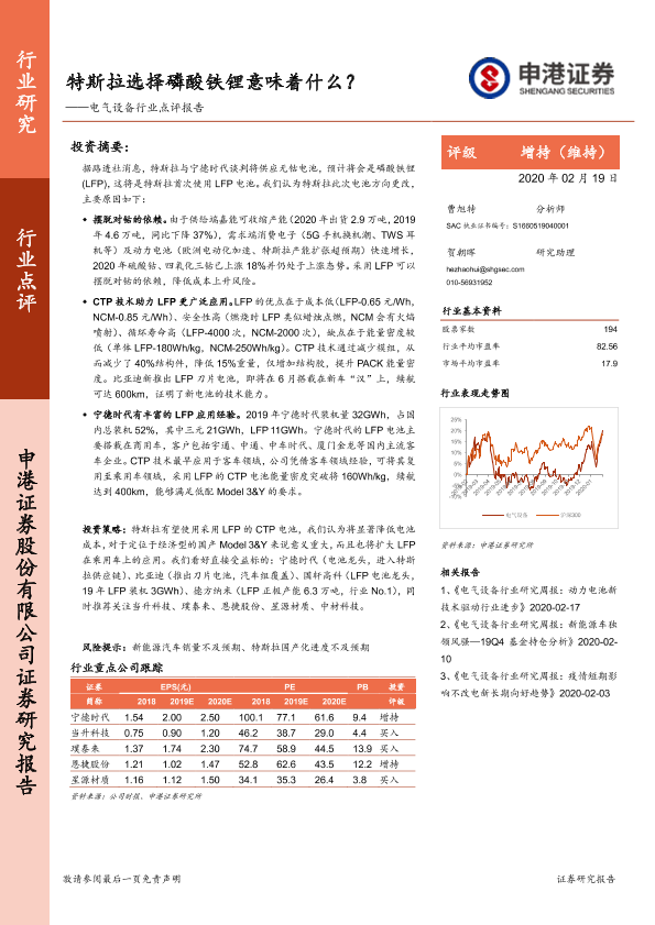 【申港证券】【20200219】20200219-申港证券-电气设备行业点评报告:特斯拉选择磷酸铁锂意味着什么?-9页