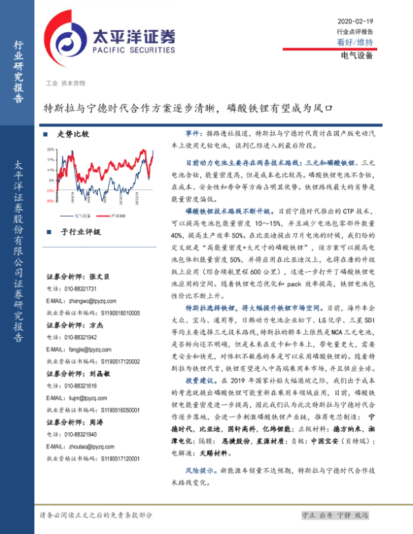 【太平洋证券】【20200219】20200219-太平洋-电气设备:特斯拉与宁德时代合作方案逐步清晰,磷酸铁锂有望成为风口-4页