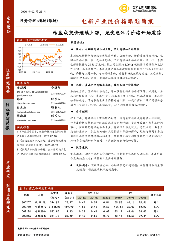 【财通证券】【20200223】电新产业链价格跟踪简报:钴盐成交价继续上涨,光伏电池片价格开始震荡-11页