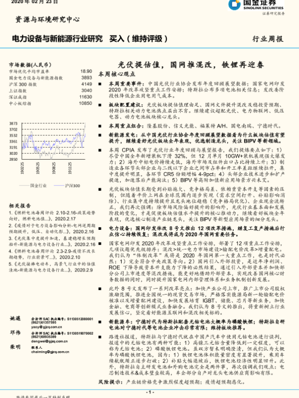 【国金证券】【20200223】电力设备与新能源行业研究:光伏 提估值,国网推混改,铁锂再迎春-4页
