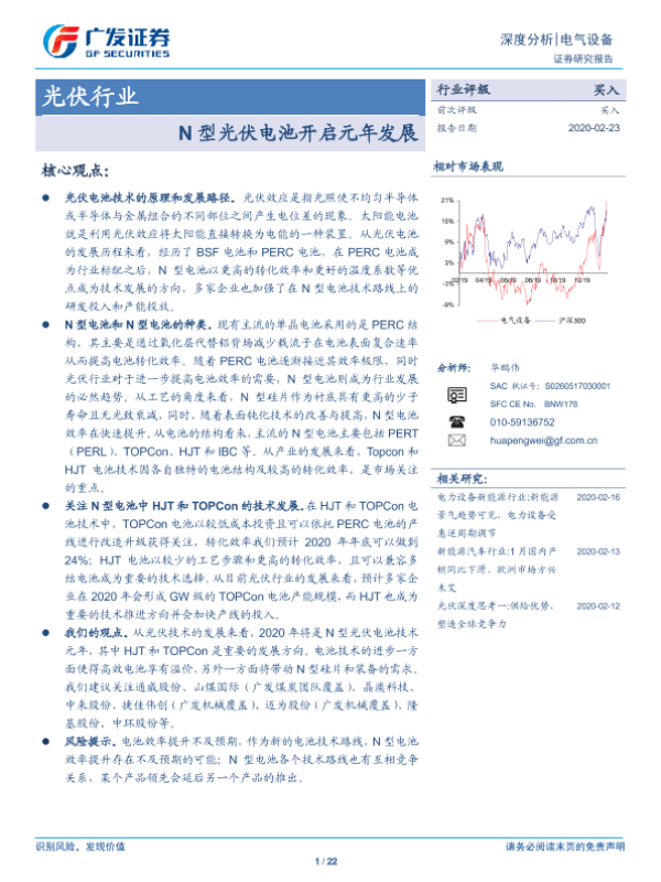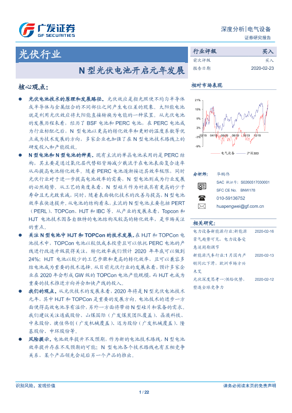 【广发证券】【20200223】光伏行业:N型光伏电池开启元年发展-22页