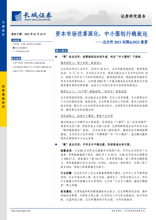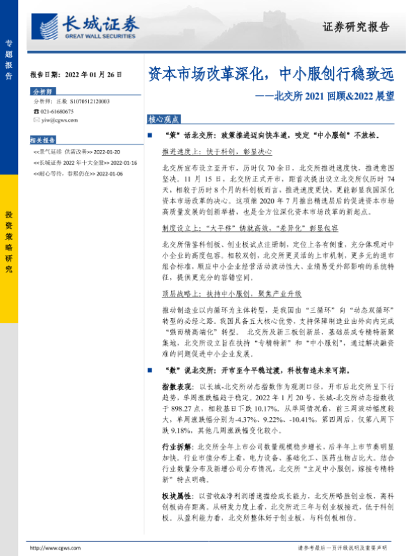 【长城证券】【20220126】北交所2021回顾&2022展望:资本市场改革深化,中小服创行稳致远-26页