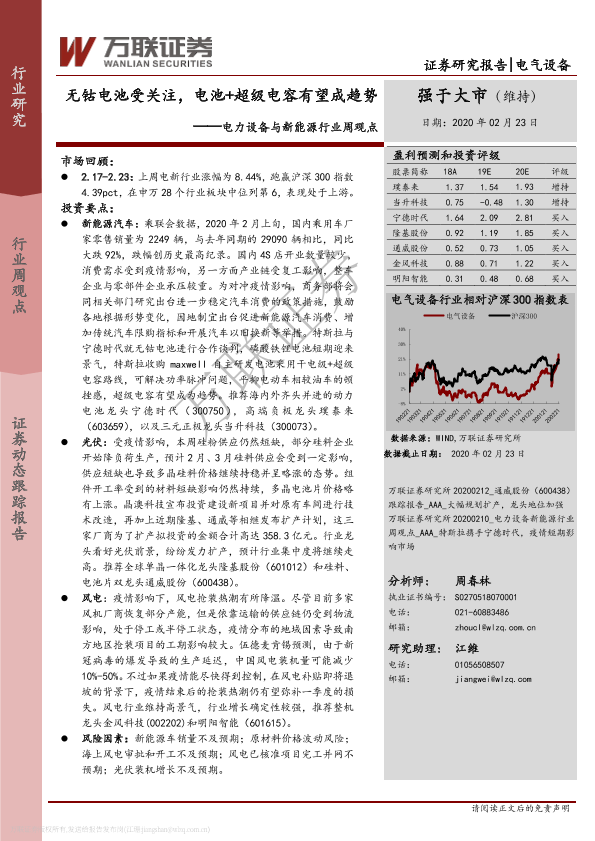 【万联证券】【20200223】20200223-万联证券-电力设备与新能源行业周观点:无钴电池受关注,电池+超级电容有望成趋势-14页