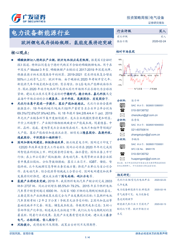 【广发证券】【20200224】电力设备新能源行业投资策略周报:欧洲锂电或存供给瓶颈,氢能发展将迎突破-4页
