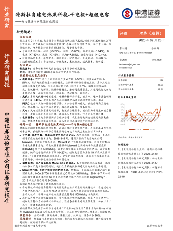 【申港证券】【20200223】特斯拉自建电池黑科技-干电极+超级电容-43页