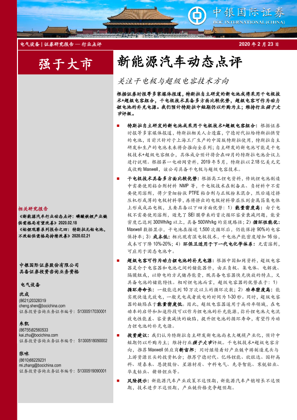 【中银证券】【20200223】新能源汽车动态点评:关注干电极与超级电容技术方向-4页