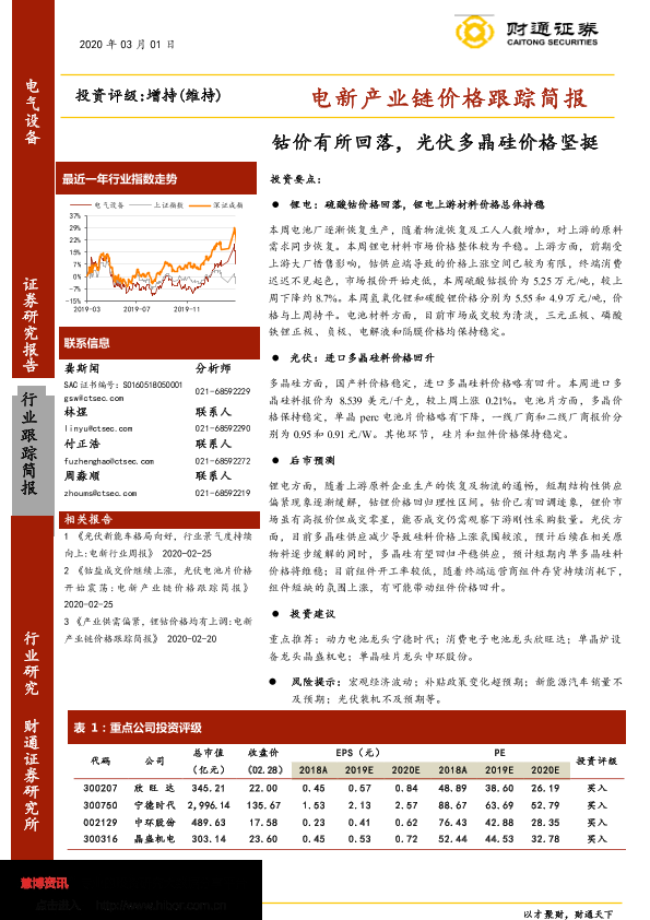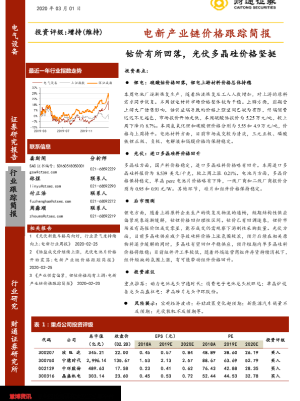 【财通证券】【20200301】电新产业链价格跟踪简报:钴价有所回落,光伏多晶硅价格坚挺-11页