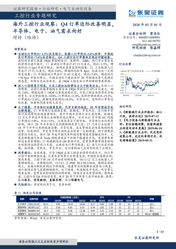 【东吴证券】【20200301】海外工控行业观察:Q4订单边际改善明显,半导体、电子、油气需求向好-13页