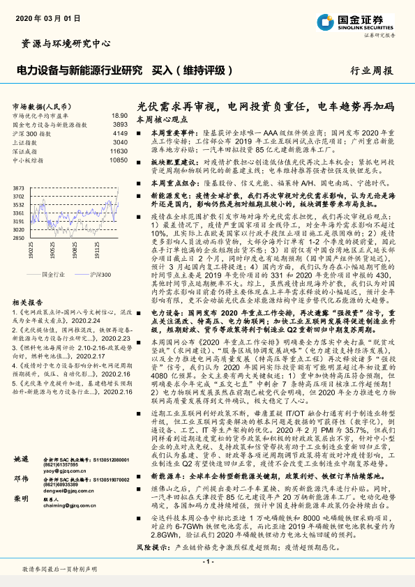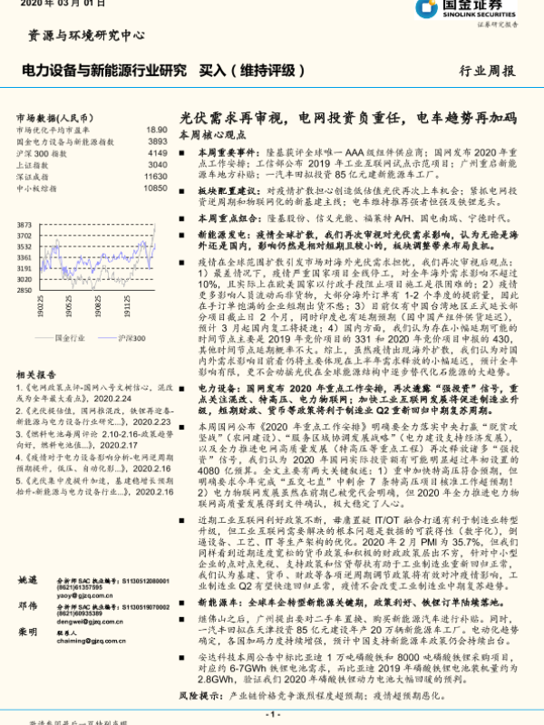 【国金证券】【20200301】电力设备与新能源行业研究:光伏需求再审视,电网投资负重任,电车趋势再加码-4页