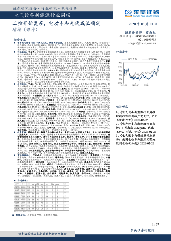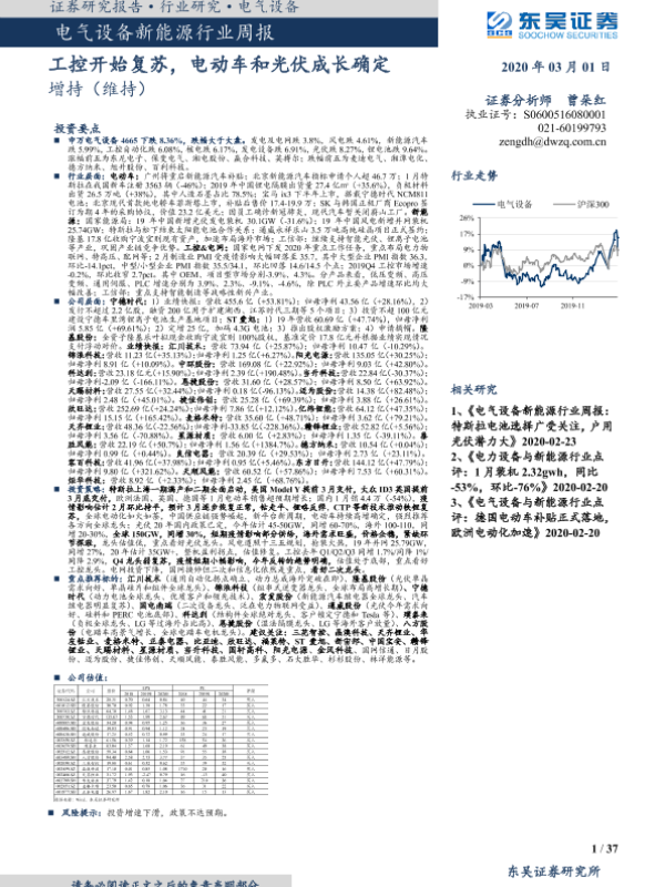 【东吴证券】【20200301】电气设备新能源行业周报:工控开始复苏,电动车和光伏成长确定-37页