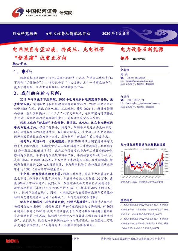 【银河证券】【20200305】电力设备及新能源行业:电网投资有望回暖,特高压、充电桩等“新基建”成重点方向-4页