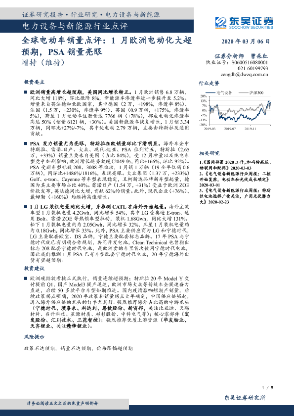【东吴证券】【20200306】全球电动车销量点评:1月欧洲电动化大超预期,PSA销量亮眼-9页