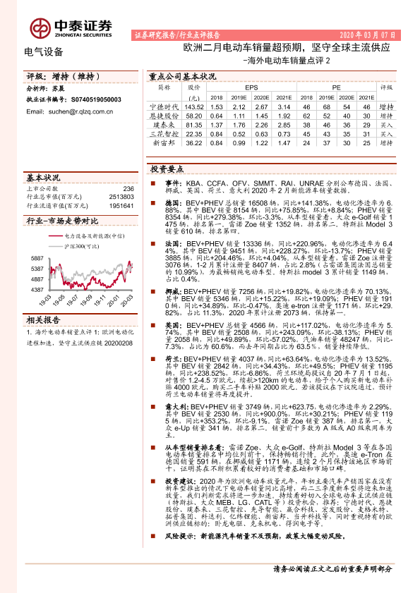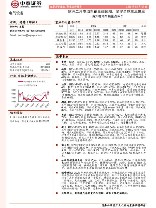 【中泰证券】【20200307】海外电动车销量点评2:欧洲二月电动车销量超预期,坚守全球主流供应-9页