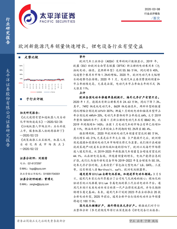【太平洋证券】【20200308】欧洲新能源汽车销量快速增长,锂电设备行业有望受益-5页