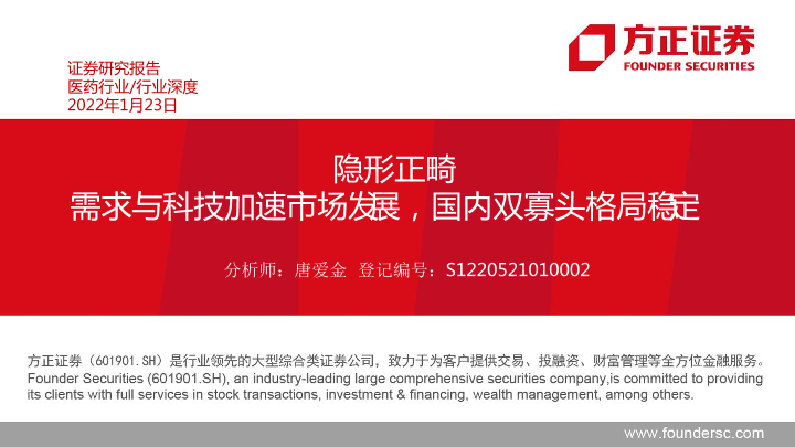 【方正证券】【20220123】医药行业:隐形正畸,需求与科技加速市场发展,国内双寡头格局稳定-54页