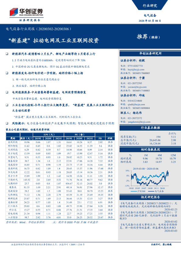 【华创证券】【20200308】电气设备行业周报:“新基建”拉动电网及工业互联网投资-18页