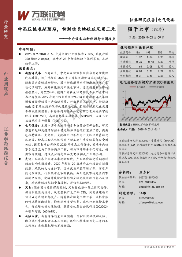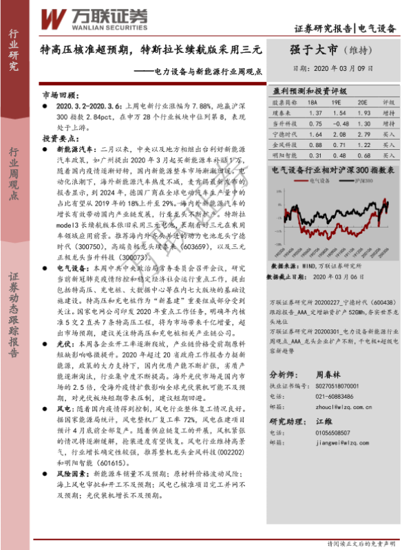 【万联证券】【20200309】电力设备与新能源行业周观点:特高压核准超预期,特斯拉长续航版采用三元-13页