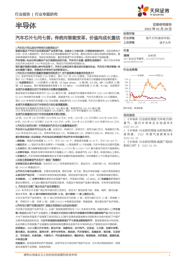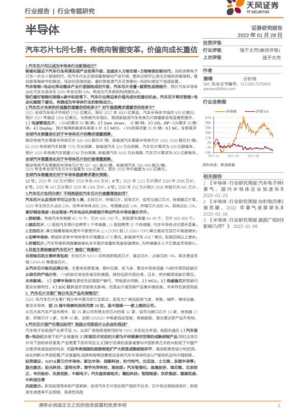 【天风证券】【20220128】半导体行业汽车芯片七问七答:传统向智能变革,价值向成长重估-90页
