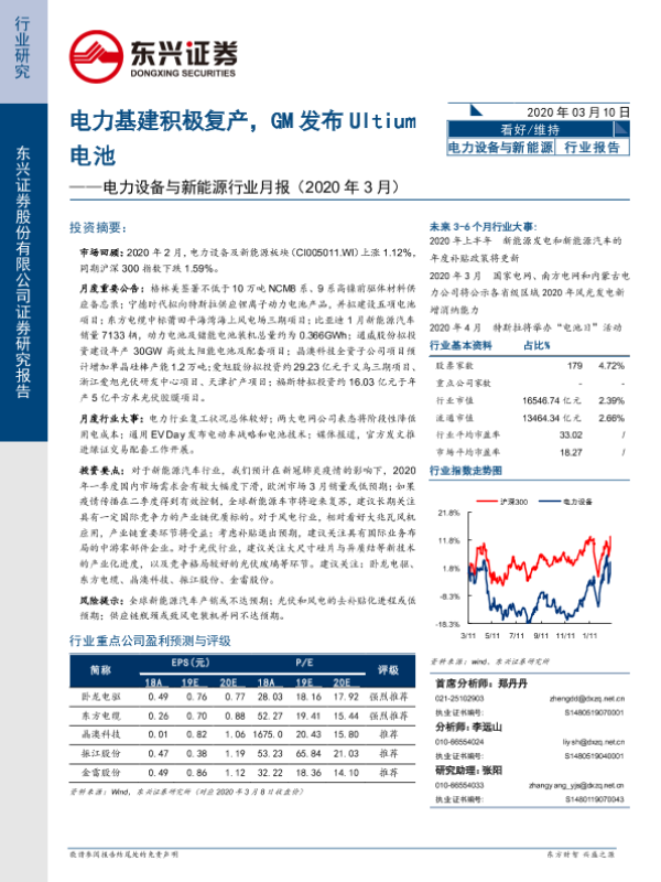 【东兴证券】【20200310】电力设备与新能源行业月报(2020年3月):电力基建积极复产,GM发布Ultium电池-17页