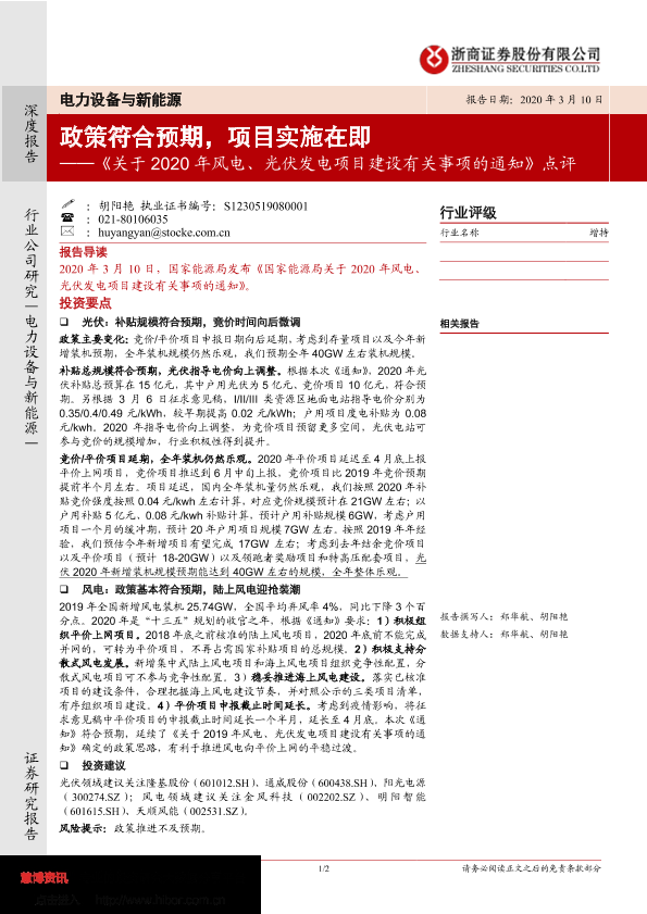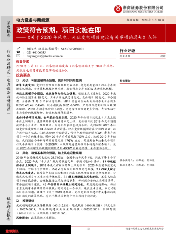 【浙商证券】【20200310】关于2020年风电、光伏发电项目建设有关事项的通知点评:政策符合预期,项目实施在即-2页